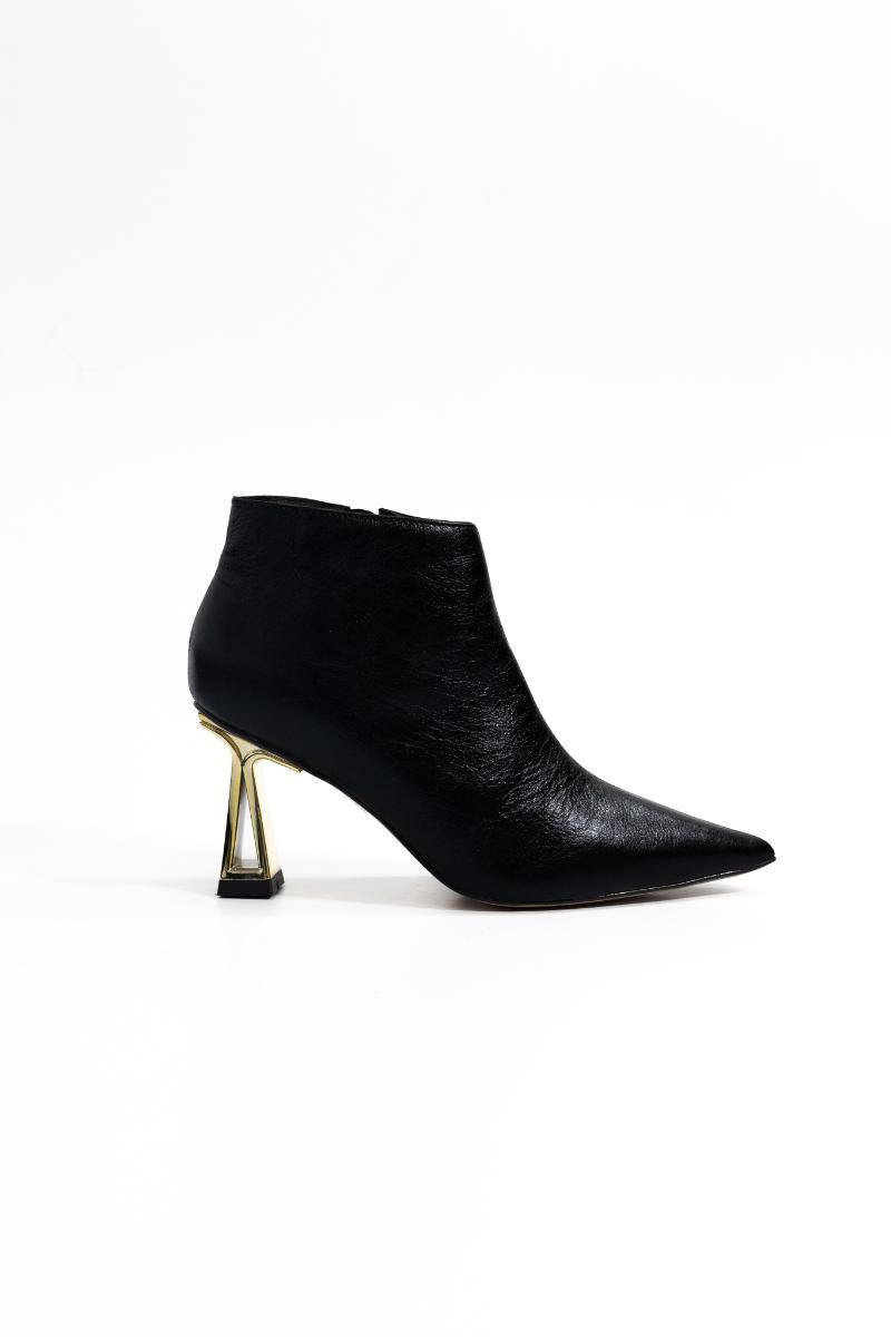 A Bota Vanucia de cano curto é a combinação perfeita de estilo e ousadia. Com zíper lateral para um ajuste prático e rápido, seu salto dourado triangular traz um toque de sofisticação única. Um modelo que vai transformar qualquer look, adicionando elegância e atitude, sem abrir mão do conforto!