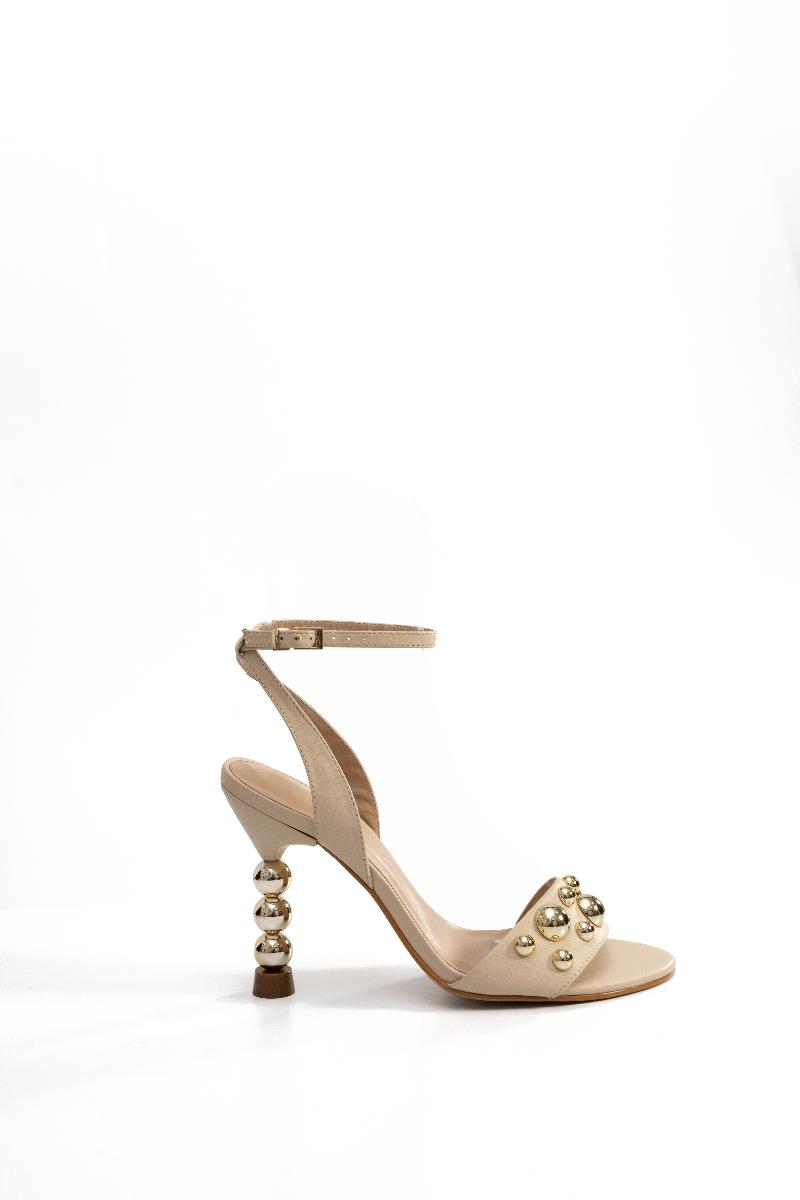 Este modelo está disponível na tonalidade nude/bege, com metais dourados, oferecendo uma combinação perfeita de elegância e charme.