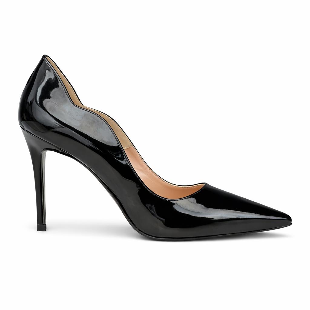 O acabamento em verniz adiciona brilho e modernidade, enquanto o recorte lateral sutil traz um toque de design ao modelo. Versátil e atemporal, é perfeito para compor looks que vão do trabalho a ocasiões especiais.