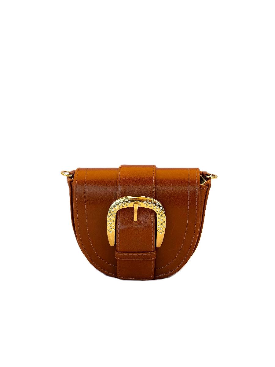 Inspirada na icônica Fendi, esta mini bag marrom é a definição de sofisticação com um toque de ousadia. Seu formato exclusivo e diferenciado traz um charme único, enquanto o detalhe que lembra uma fivela de cinto dourado com brilhos na frente adiciona um toque de glamour que você não vai querer perder.